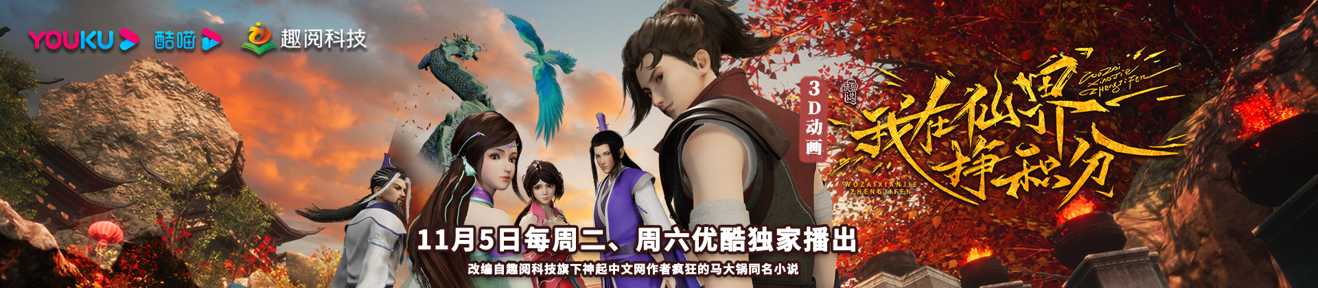 趣閱科技自制3D動(dòng)畫《我在仙界掙積分》,改編自趣閱科技旗下神起中文網(wǎng)作者瘋狂的馬大鍋的同名小說,2022年11月5日在優(yōu)酷獨(dú)家播出
